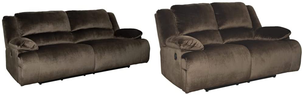 Signature Design by Ashley Clonmel Microfiber Extra Wide Seat Adjustable Power Reclining Sofa, BrownLarge-scale comfort is yours with the colonel 2-seat reclining power sofa. With supremely padded back, seat and arm cushions, it’s the hero for ultimate relaxation. Microfiber upholstery is welcoming, soft and luxuriously covers the extra-wide seats. Recline back and kick up your feet to bolster your comfort level even more.Signature Design by Ashley Clonmel Microfiber Extra Wide Manual Reclining Loveseat, BrownLarge-scale comfort is yours with the Clonmel reclining loveseat. With supremely padded back, seat and arm cushions, it’s the hero for ultimate relaxation. Microfiber upholstery is welcoming, soft and luxuriously covers the extra-wide seats. Recline back and kick up your feet to bolster your comfort level even more.