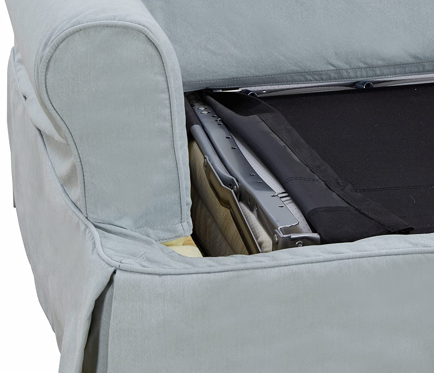 - ✅ Upgraded queen-size futuragel swirl memory foam, gel-infused foam mattress with open cell design to support Air (heat) and moisture movement, improving blood flow and oxygen exposure | mattress features curved support bar so your back does not come in contact with the metal, with pressure point relief, increasing support for recessed parts of the body | Sleeper mechanism Manufactured by longevity from 14 gauge Tubular Steel with locking TV headrest, providing an excellent sleeping and seating foundation designed for daily use | anti-tilt mechanism allows two people to sleep comfortably and safely | Elegant and contemporary silver bed support mechanism