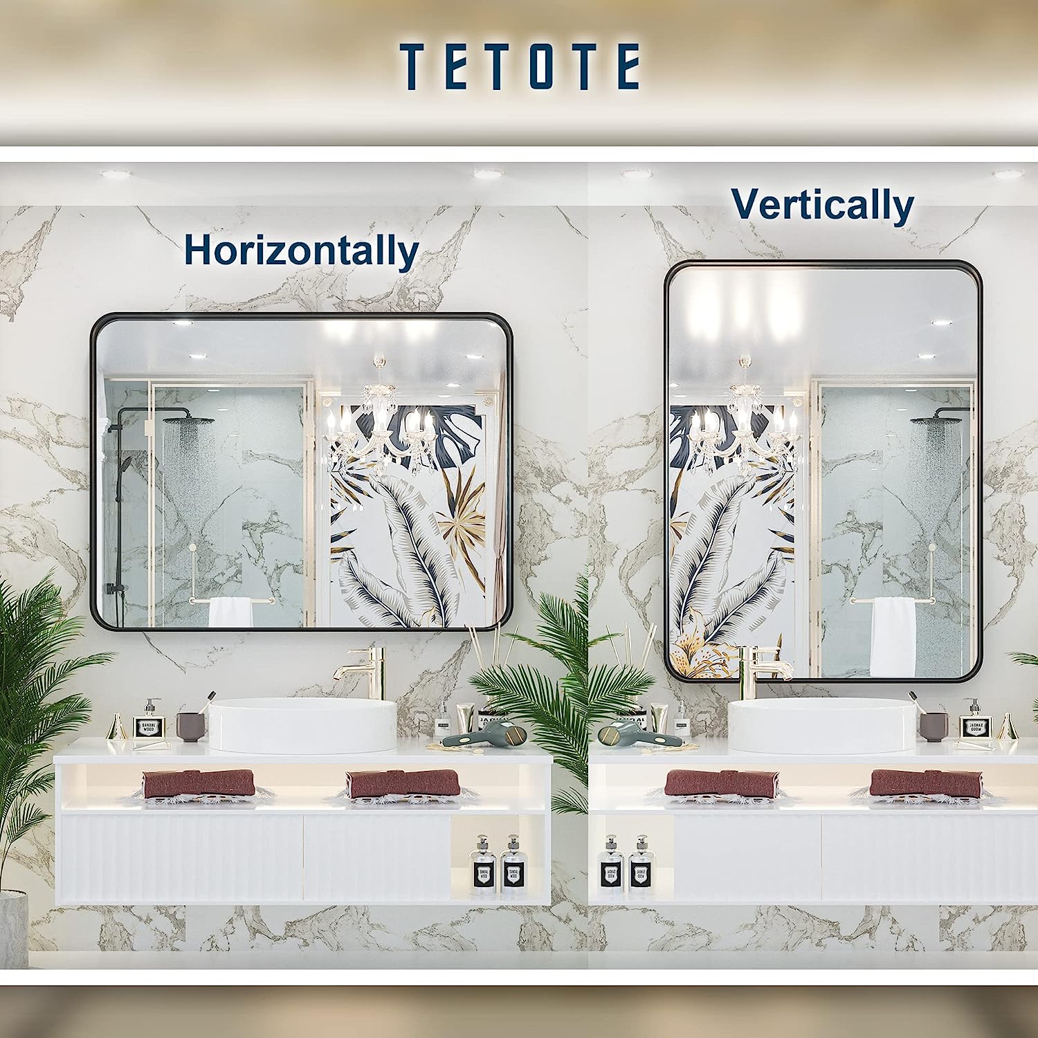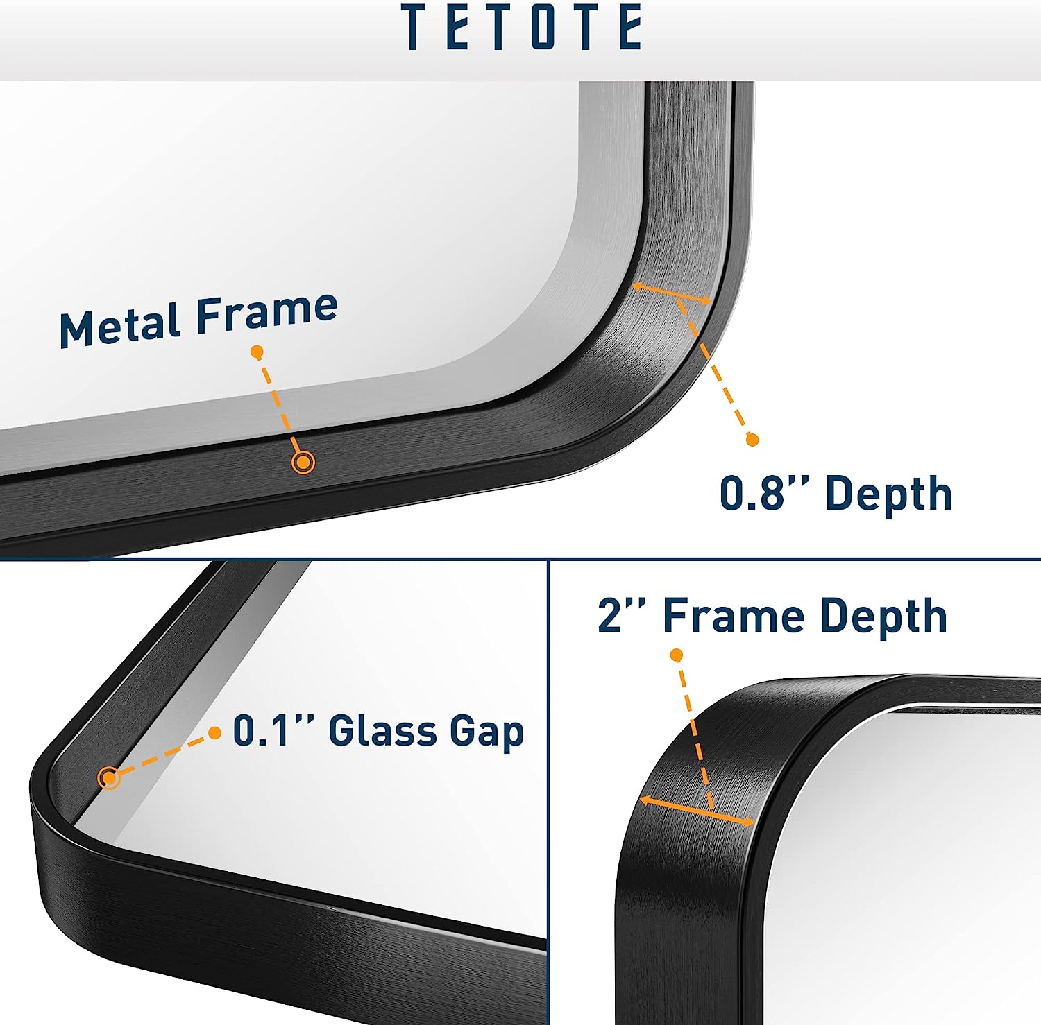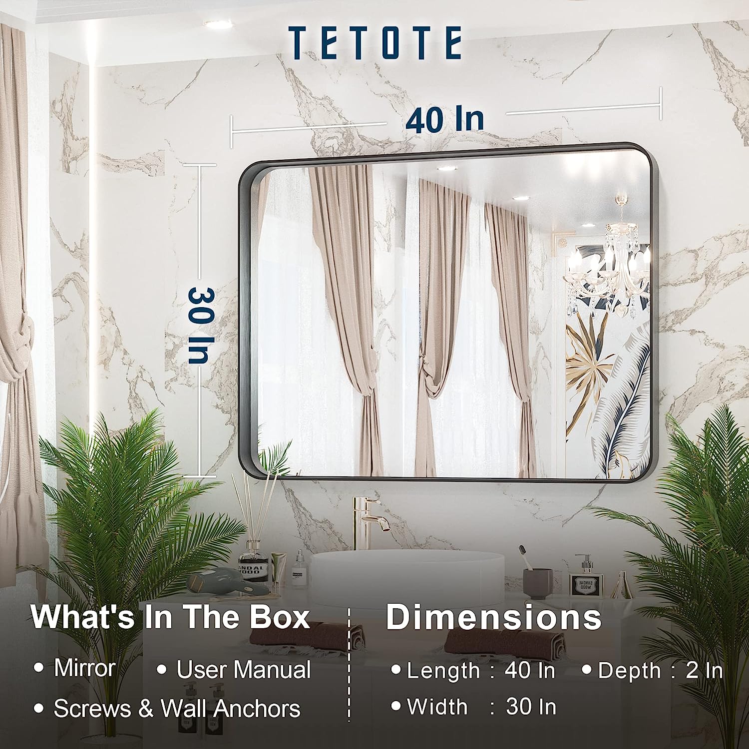 • ✨【Practical and decorative framed mirror】TETOTE's 40 x 30 inch bathroom wall mirror is made of HD glass and premium metta black metal frame. Rectangle shape with round corner of the framed mirror features the modern style. Meets the decor needs to industry, rustic and modern style of bathroom, bedroom vanity, entryway, farmhouse, hotel or salon