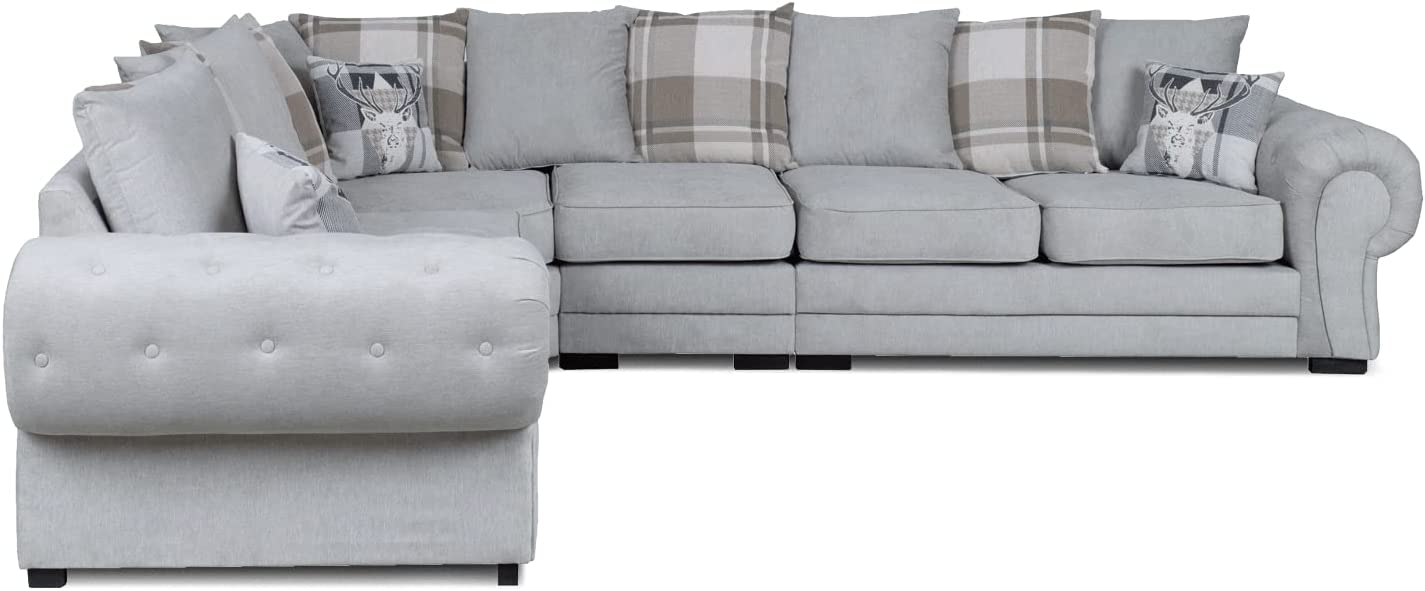VERONA GREY SUEDE FABRIC LARGE CORNER SOFA SETTEE – SOFA FOR LIVING ROOM-LEFT/RIGHT HAND SIDE SOFAS- DELIVERY ALL OVER UK-003 (Left hand side)