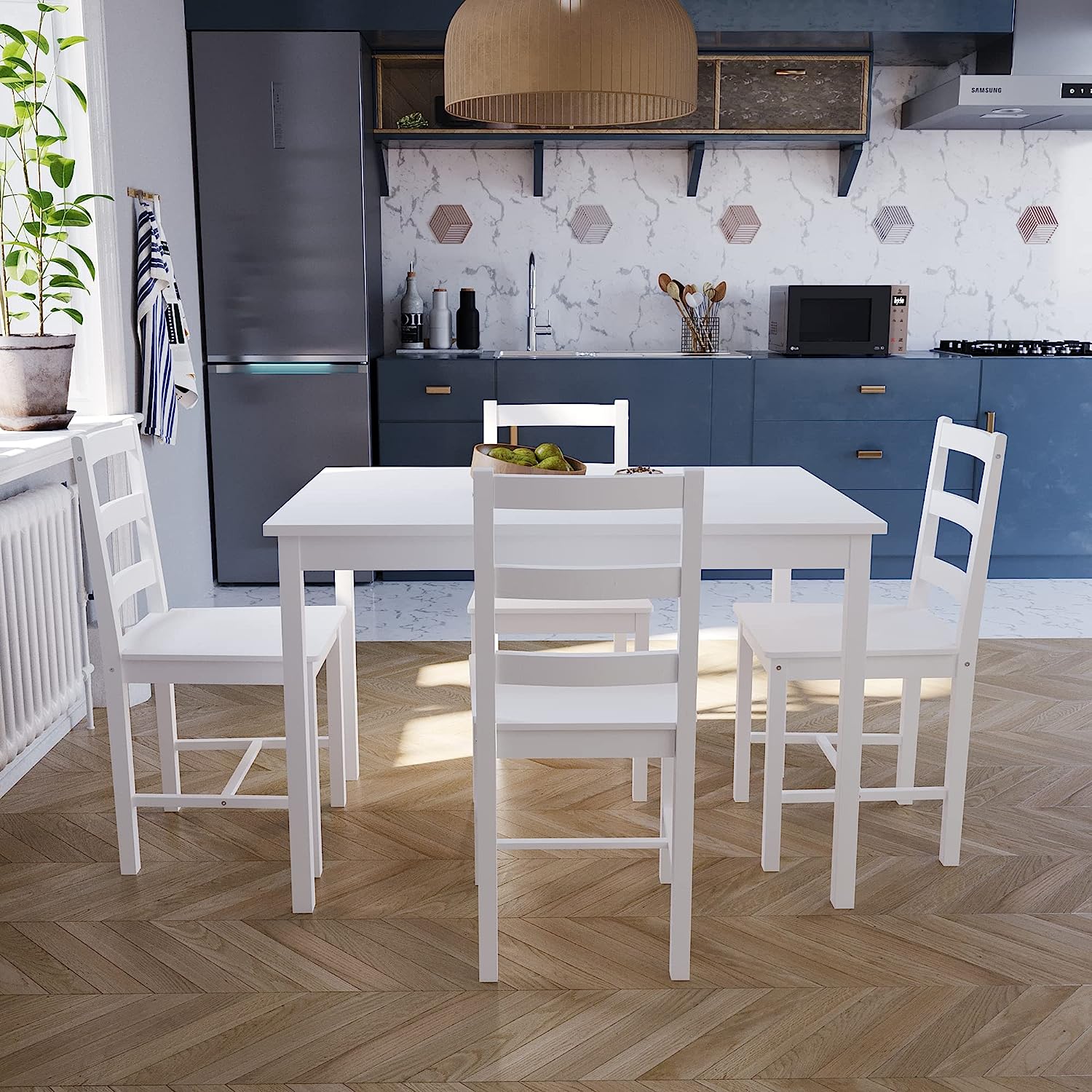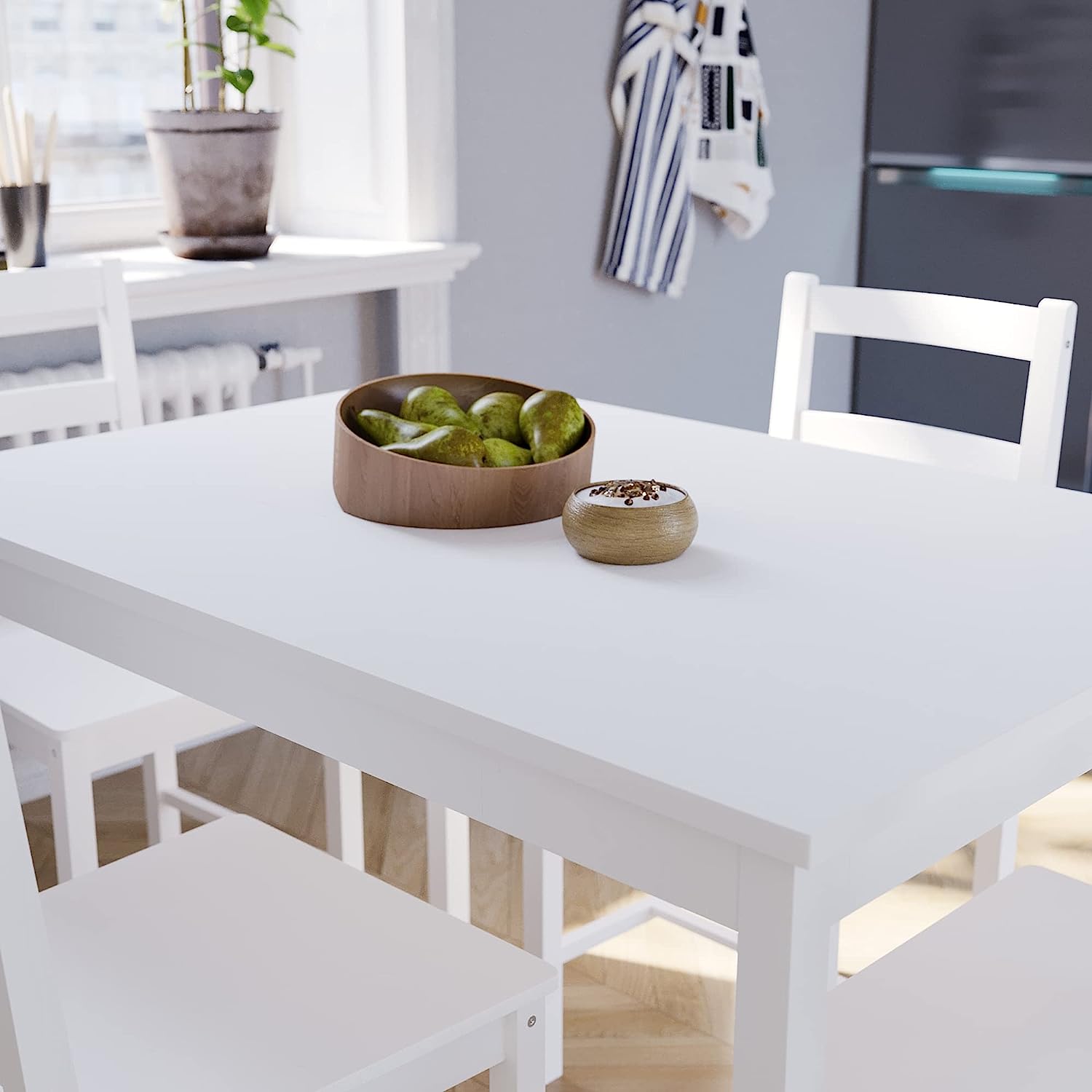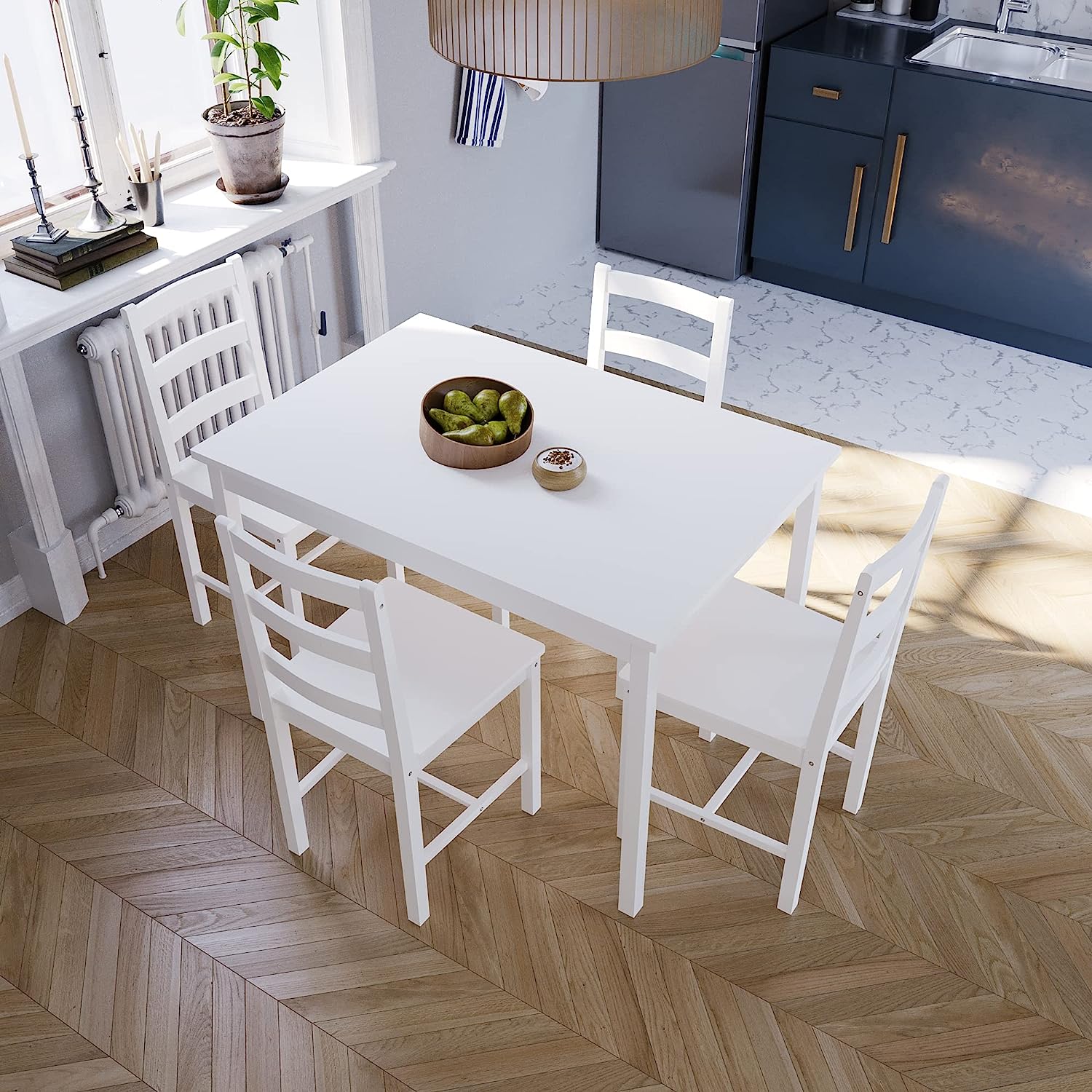 Vida Designs Yorkshire Dining Table and Chairs Set Kitchen Home Furniture (White, 4 Seater)