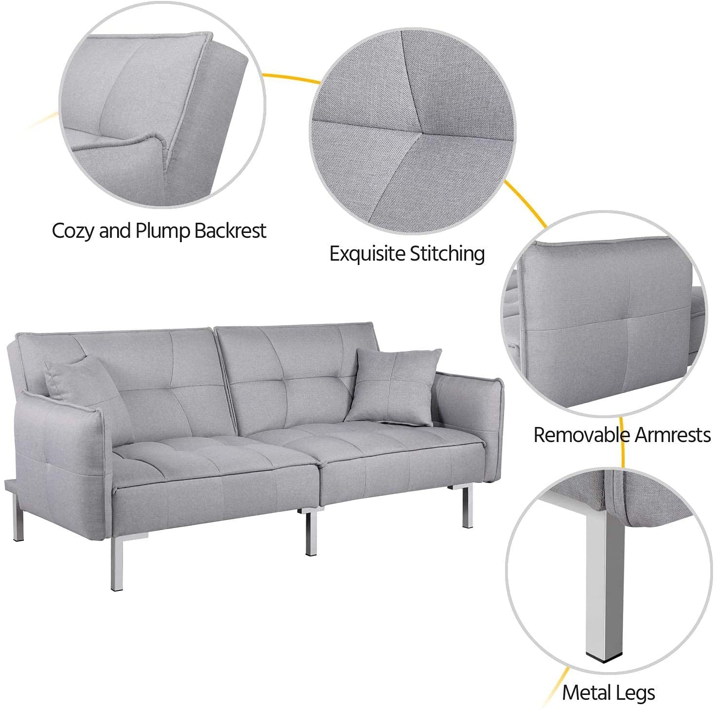- More flexible options: 2 detachable armrests on both sides – it will convert from a comfortable loveseat set with both armrests into a relaxed living room daybed with one or two armrests off. 2 separate backrests for free-and-easy support – you can have each of them adjusted at different angles to accommodate different persons.