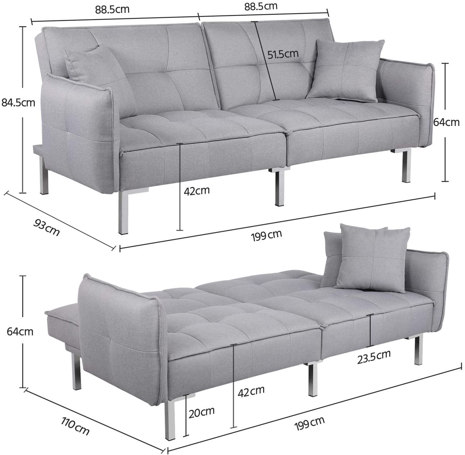 Yaheetech Sofa Bed 198CM Modern Fabric 3 Seat Click Clack Sofa Bed Couch Settee with Arms and 2 Soft Cushions Grey