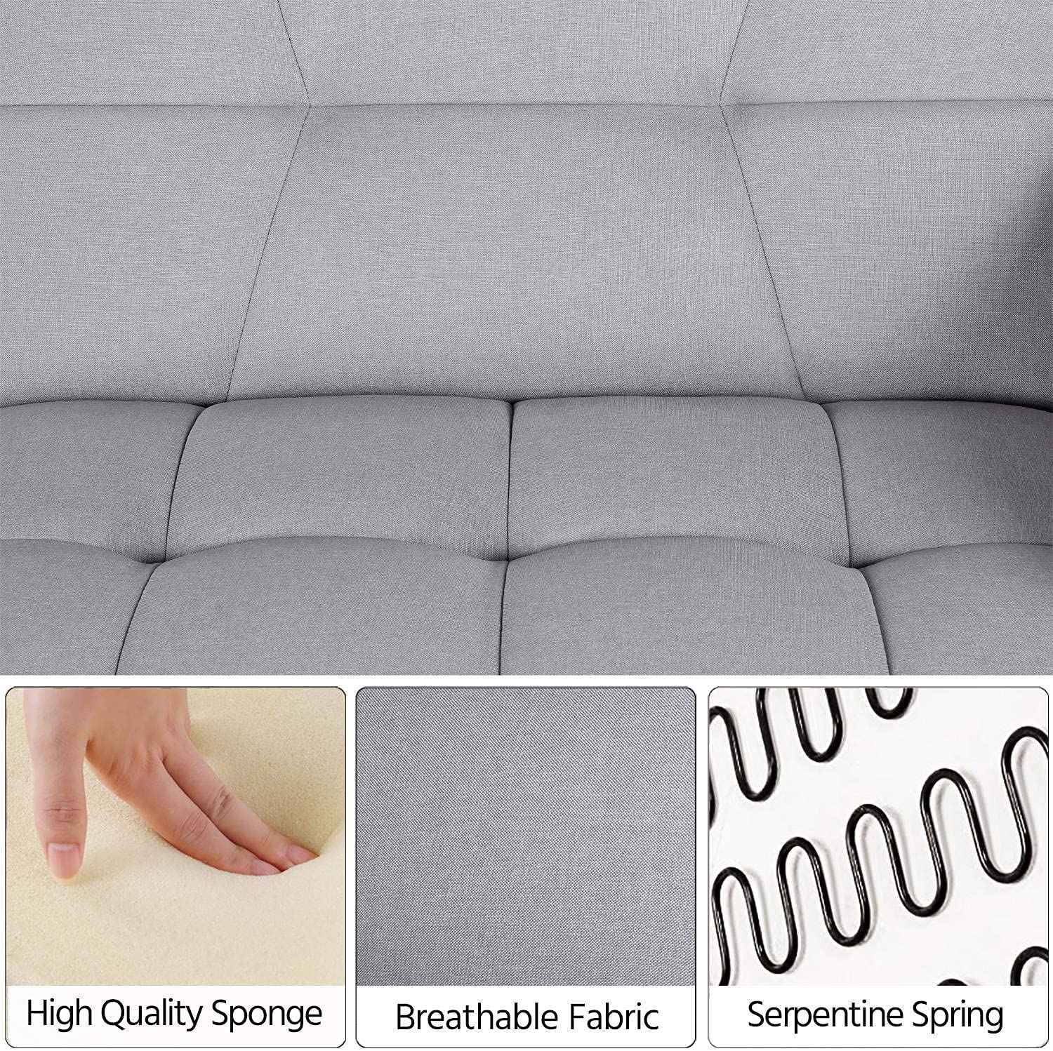 - Sturdy plywood/metal construction: This heavy-duty sofa is built of a robust frame with a quality furniture-grade budget-friendly plywood. Six 3cm/1" diameter strong metal legs to support the frame: i.e. 4 L-shaped legs on both sides plus 2 T-shaped legs in center. The whole piece is capable of a weight capacity up to 350kg/772lb.