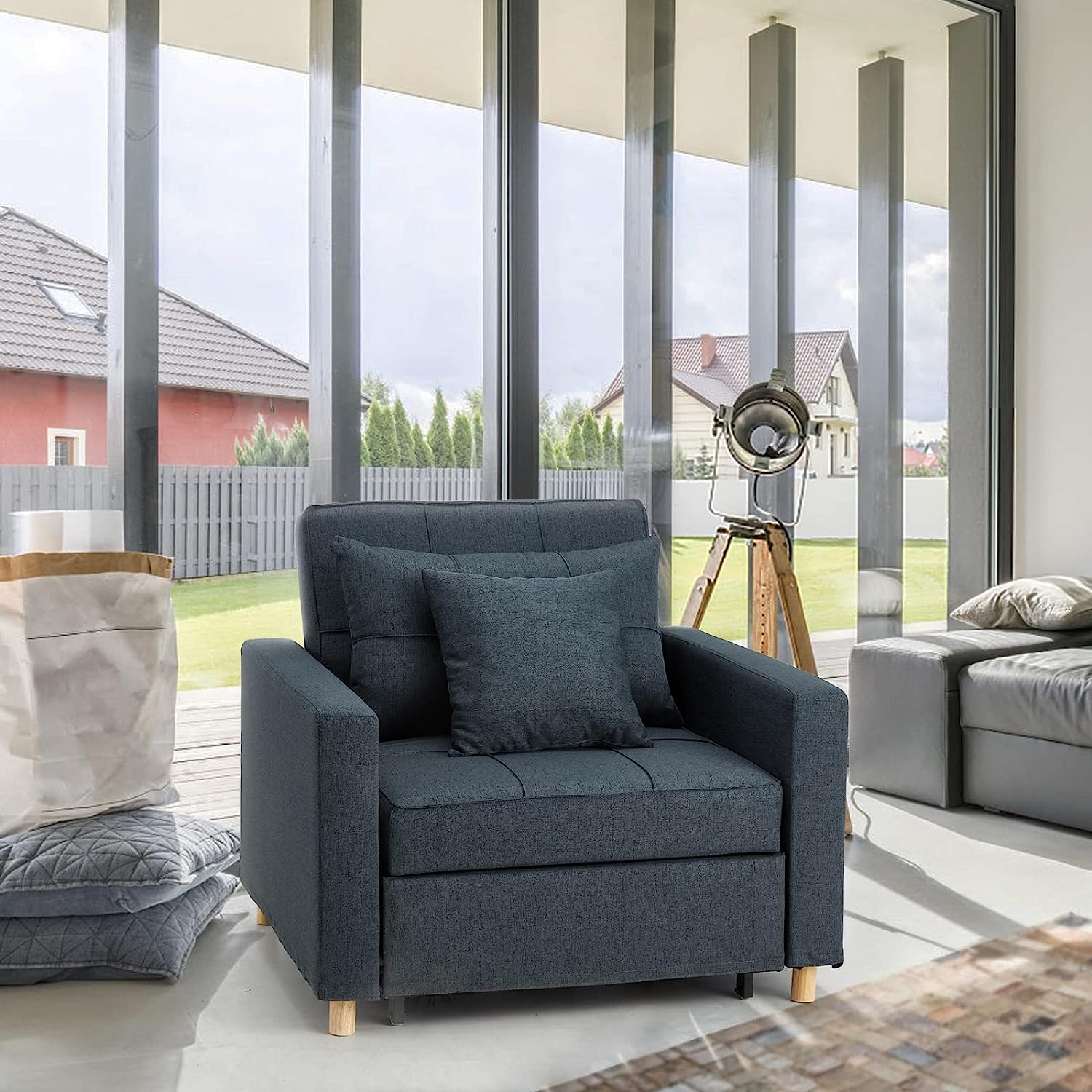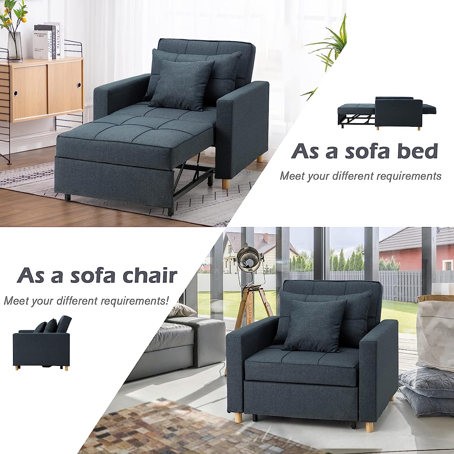 - đă3-IN-1 Three Use At Homeă – YODOLLA Single sofa bed chair gives more possibilities to your home.The wheels design and handy strap makes it more convenience.So easy to make chair that turns into a bed.No matter what room it is, whether it is a large room or a small room, this is your best choice! Great chair beds for adults twin!