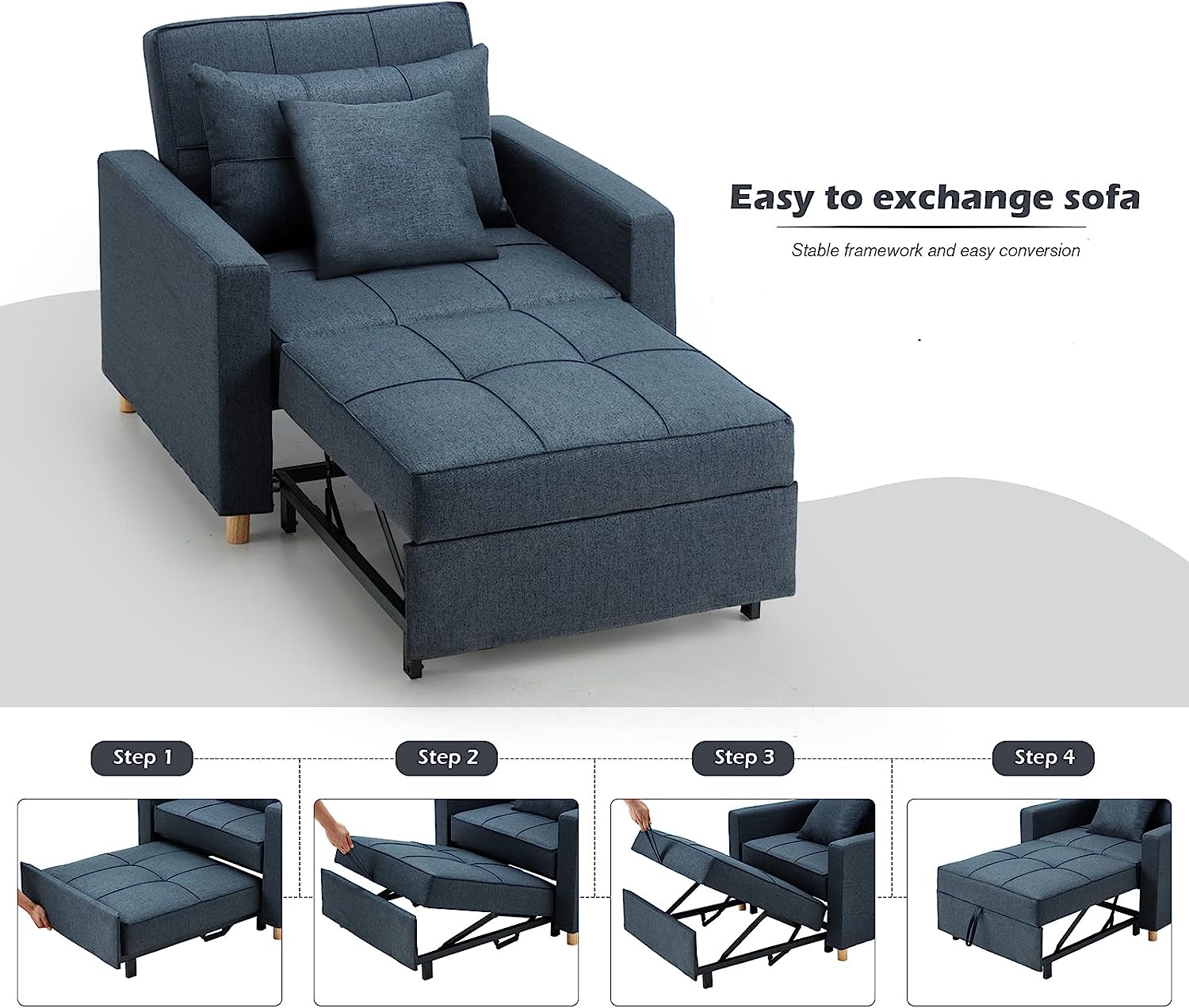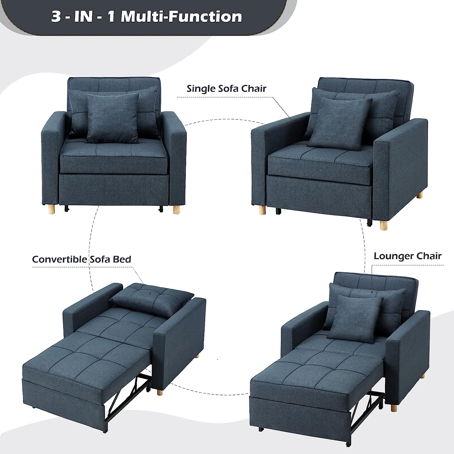 YODOLLA 3-in-1 Sofa Bed Chair, Single Sleeper Chair Bed with Adjustable Backrest Into a Sofa,Lounger Chair,Single Bed,Convertible Chair Bed for Adults, Navy