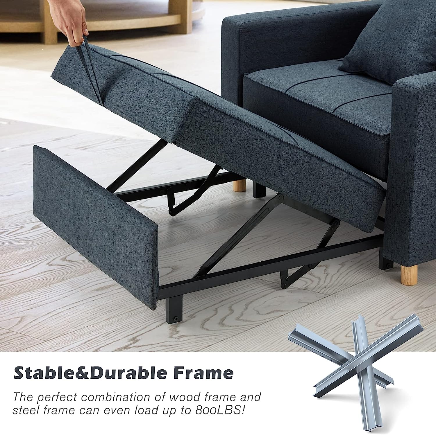 - đăProvide You With Sufficient Supportă – The combined frame of wood and rust-proof steel, in the case of uniform force, the capacity is up to 800lbs, the breathable and comfortable linen fabric, each material is strictly controlled by us, so you can use it comfortably. rest assured.