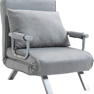 HOMCOM Single Sofa Bed Armchair Soft Floor Sleeper Lounger Futon Couch w/Pillow and Pocket Grey