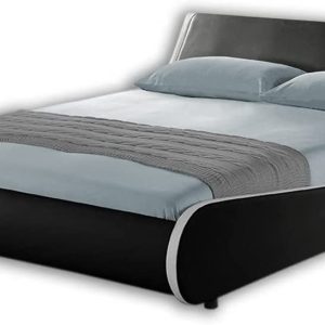Home Detail Leather Bed Frame Double Bed or King Bed Upholstered with Faux Leather Fabric, Bed Frames Only in Double Size or King in Various Leather Bed Colours (Double, Black/White)