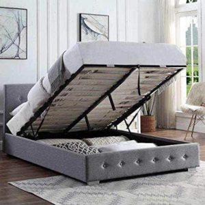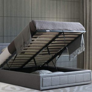 Home Treats Upholstered Bed Double | Ottoman Bed Frame | Grey Fabric Bed Frame With Storage (Double, No Mattress)