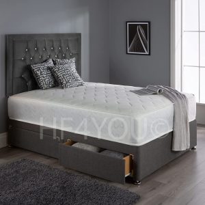 Home Furnishings UK Victoria Divan Bed Set with 10" Ortho Mattress, 24" Matching Headboard and 2 Drawers Same Side (3ft Single, Grey)