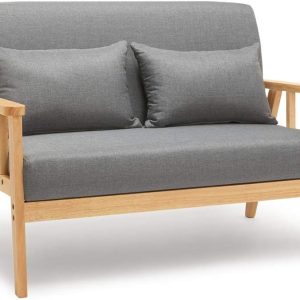Meerveil Sofa 2 Seater, Armchair Couch Modern Wooden Fabric Linen 110cm for Bedroom Lounge Living Room Office Garden Yard (Dark Grey)