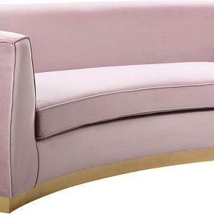 Meridian Furniture Julian Collection Modern | Contemporary Velvet Upholstered Sofa with Stainless Steel Base in Rich Gold Finish, Pink, 91.5″ W x 36″ D x 28″ H