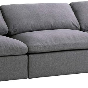 Meridian Furniture Serene Collection Modern | Contemporary Deluxe Cloud-Like Comfort Modular Sofa, Soft Linen Textured Fabric, Down Cushions, 2 Corner + 1 Armless, Grey