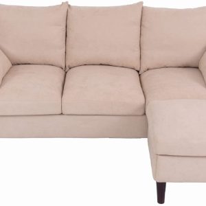 Panana 3-Seater Sofa with Reversible Chaise, Linen Fabric Sofa Couch with Footstool, Beige