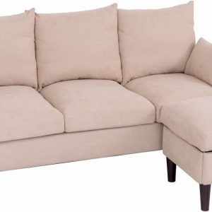 Panana Fabric Corner Sofa Living Room Suite, 3 Seater with Ottoman Footstool, 3 Seater L Shape Sofa Set, Beige