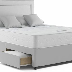 Rapyal Sleep 4FT Small Double 120cm x 190cm Grey Linen Divan Bed with Deluxe Mattress, Matching Headboard 24" and 2 free Storage drawers