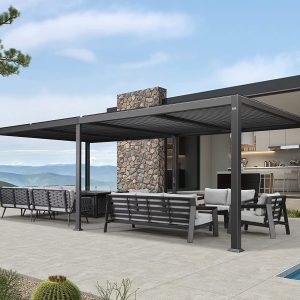 PURPLE LEAF 12' X 20' Outdoor Pergola with Retractable Canopy Aluminum Shelter for Porch Garden Sun Shade Beach Pavilion Grape Trellis Grill Gazebo Modern Backyard Deck Metal Patio Pergola Gray