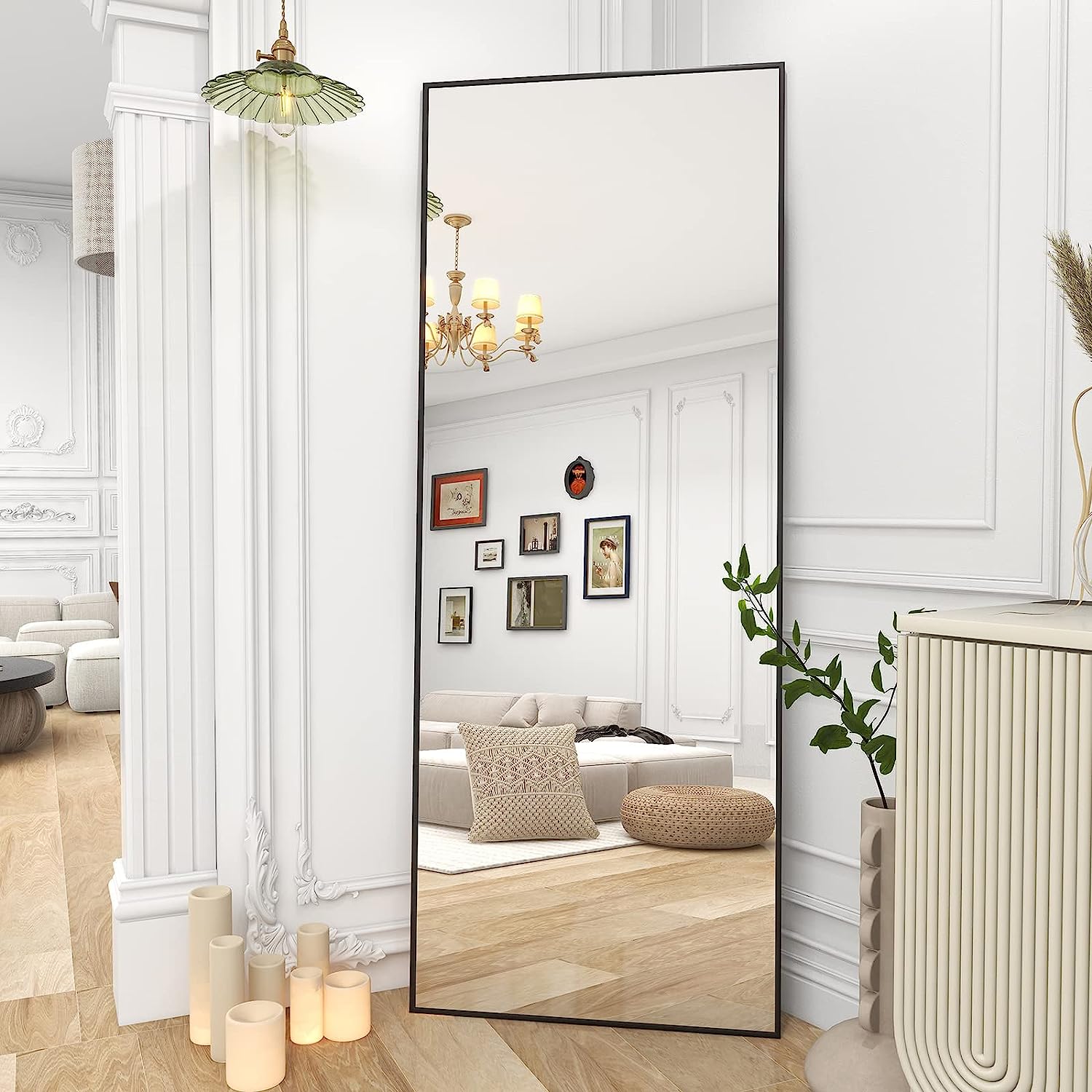 BEAUTYPEAK Full Length Mirror 64"x21" Nano Glass, Standing Rectangle Floor Mirrors Body Dressing Wall-Mounted Mirror for Living Room, Bedroom, Black