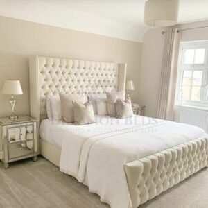 Wingback Bed Frame Double King Size Super King (Cream Plush, 5ft King Size)