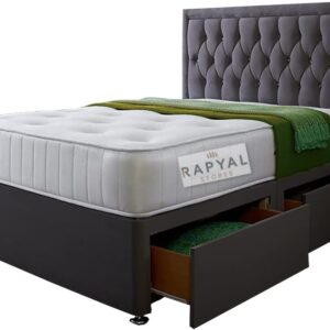 Benzema Divan Bed Plush + 2 Draw Storage Same Side + 24" Rio Princess Diamante HB | Plush (Black Plush, 4FT6 Double)